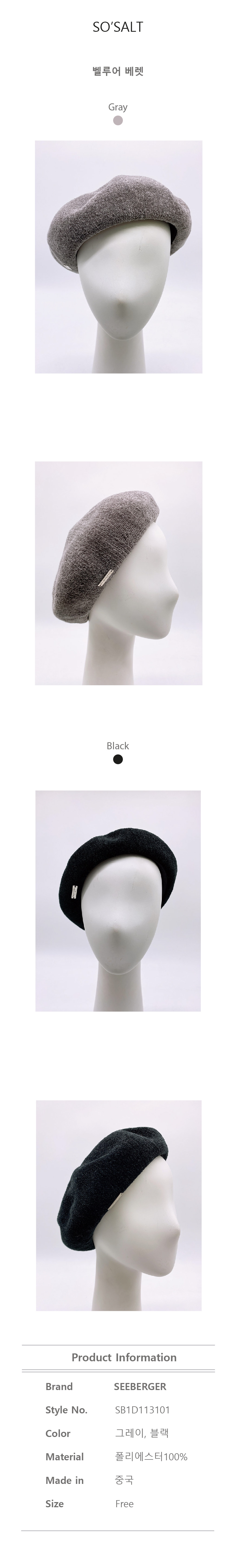 [시버거] 벨루어 베렛 SB1D113101