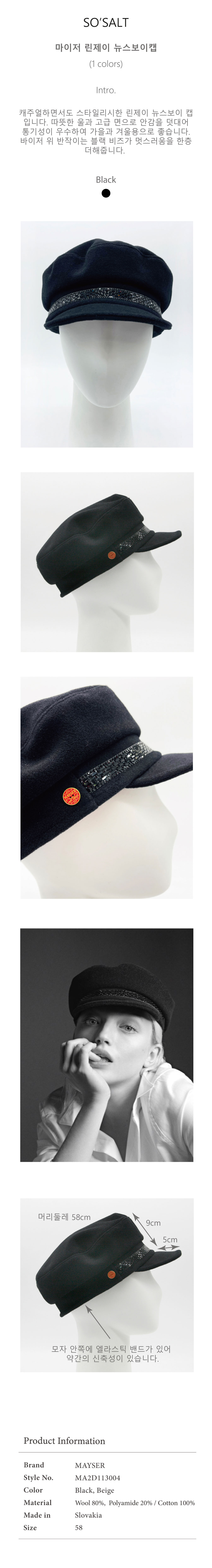 [SO'SALT] Mayser 린제이 뉴스보이 캡 MA2D113004