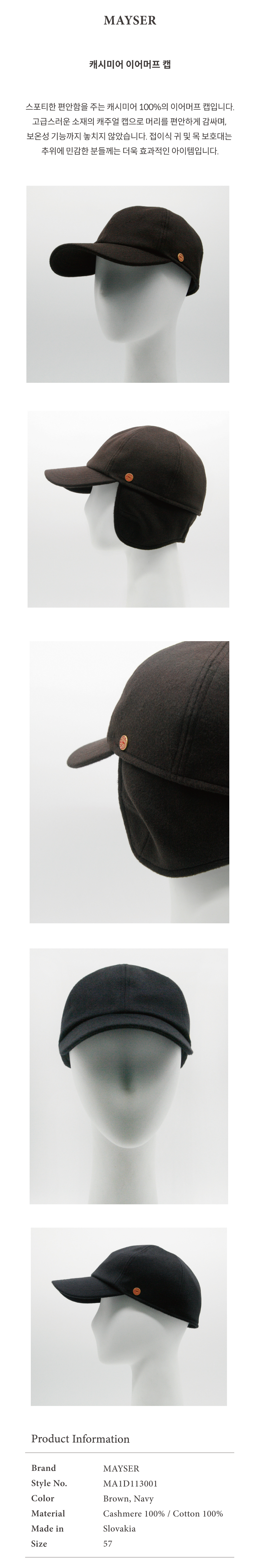 마이저 캐시미어 이어머프 캡 MA1D113001