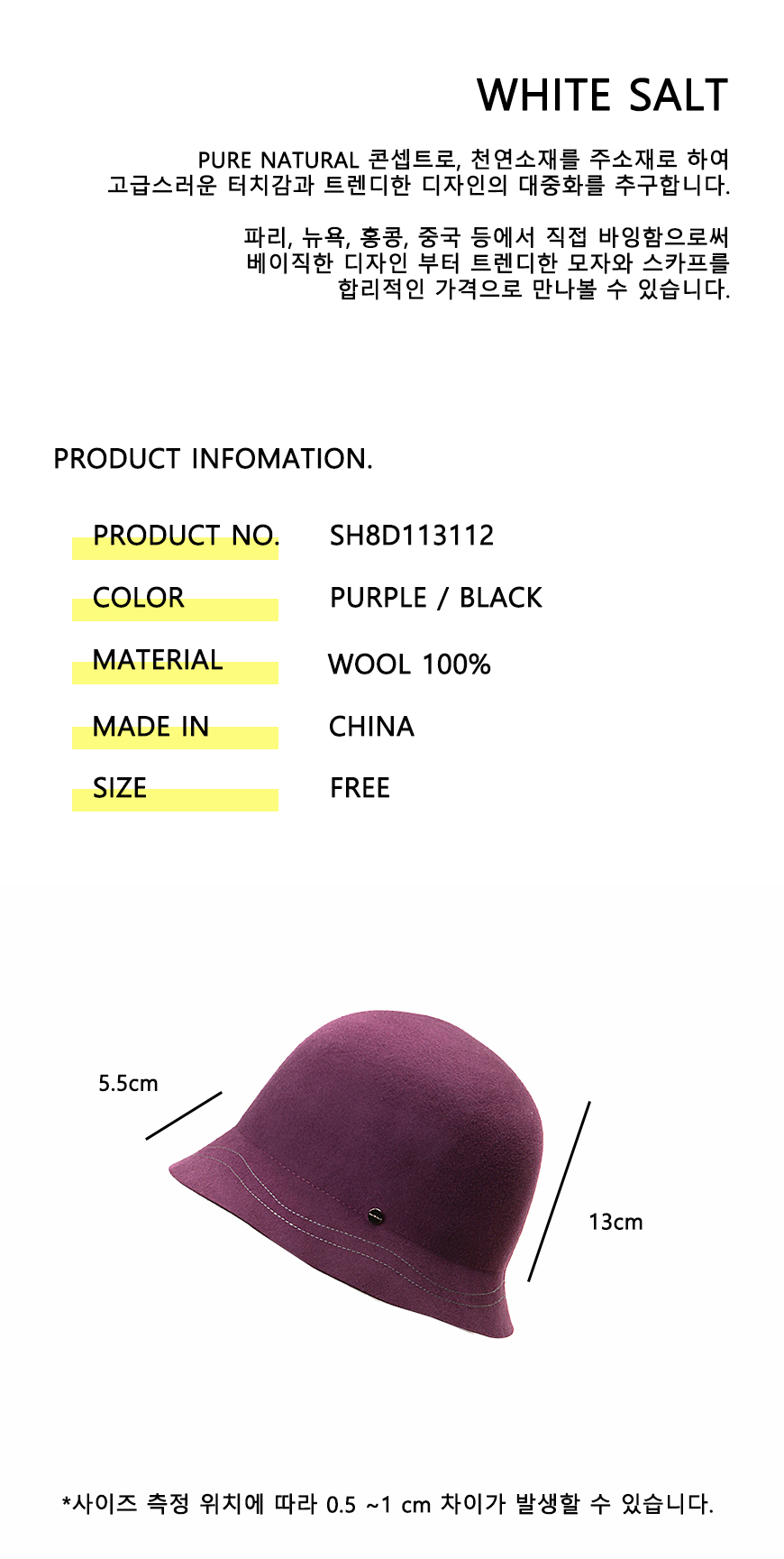 [WHITE SALT] 클래식 클로슈 SH8D113112