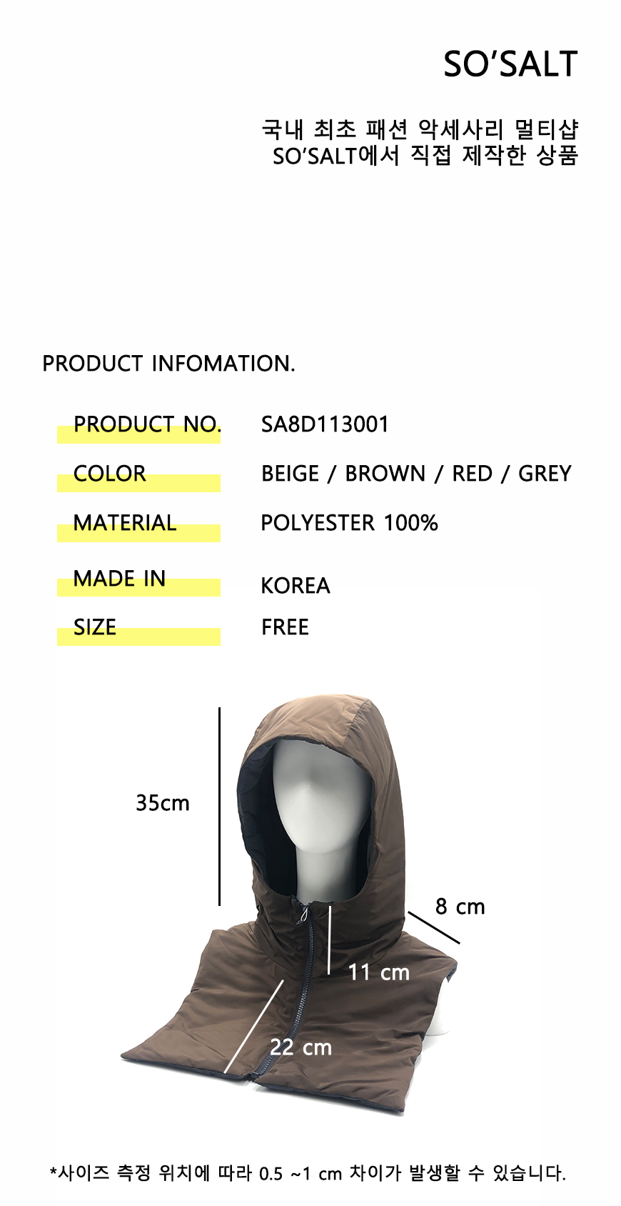 [SO'SALT] 리버서블 패딩 후드 넥 워머 SA8D113001